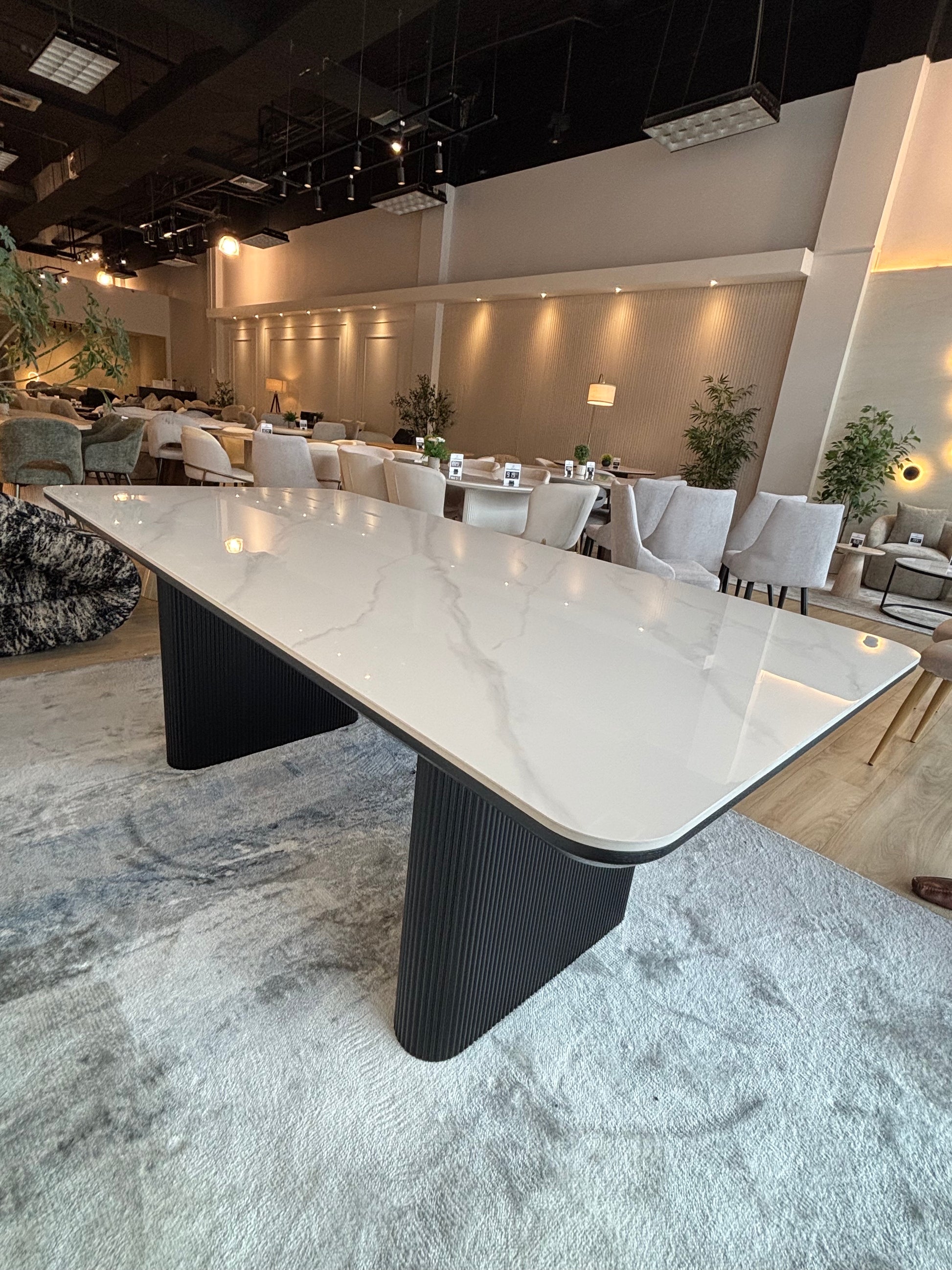 Mesa comedor de 6 puestos. Base de MDF. Sobre de piedra sinterizada