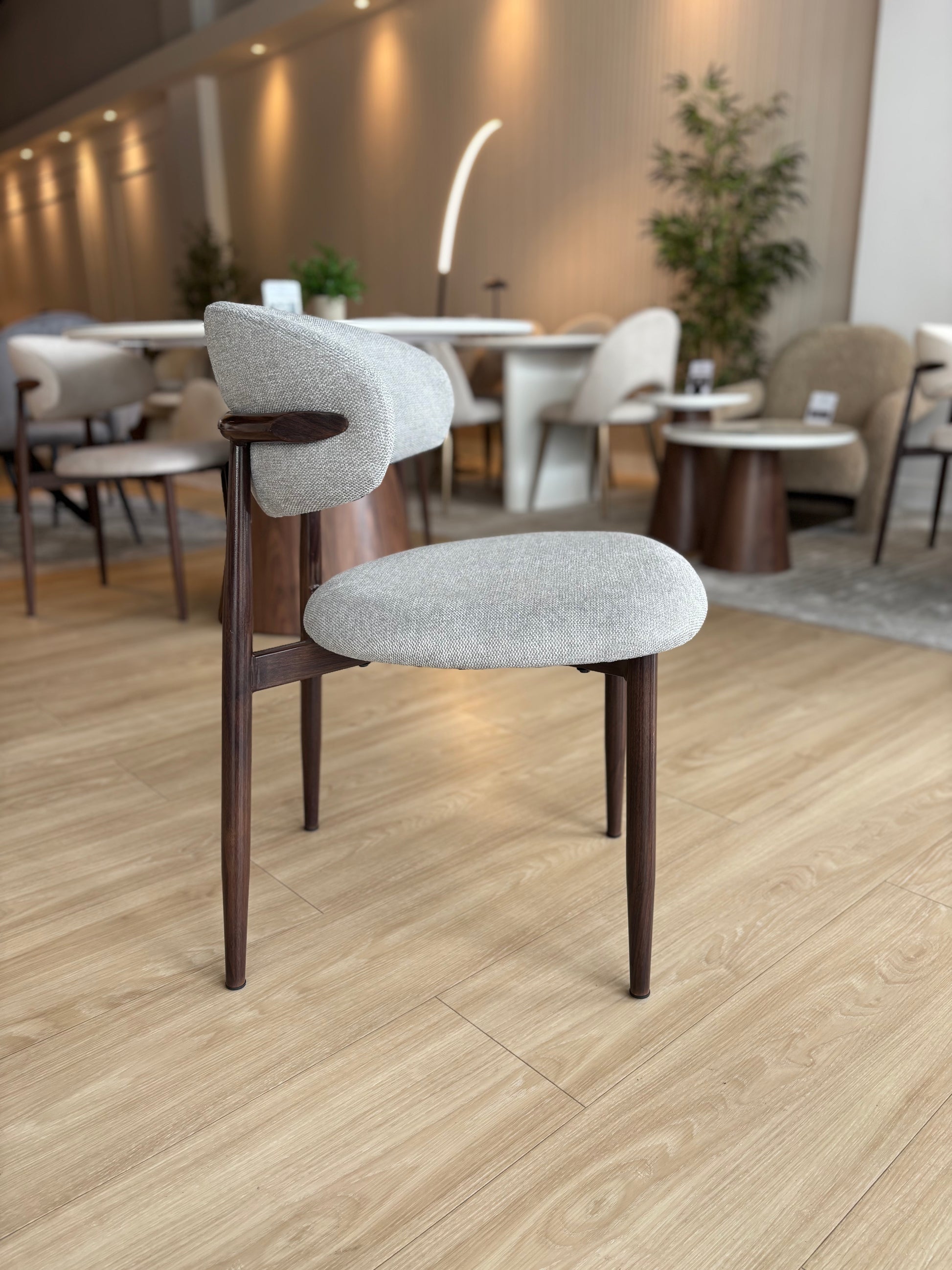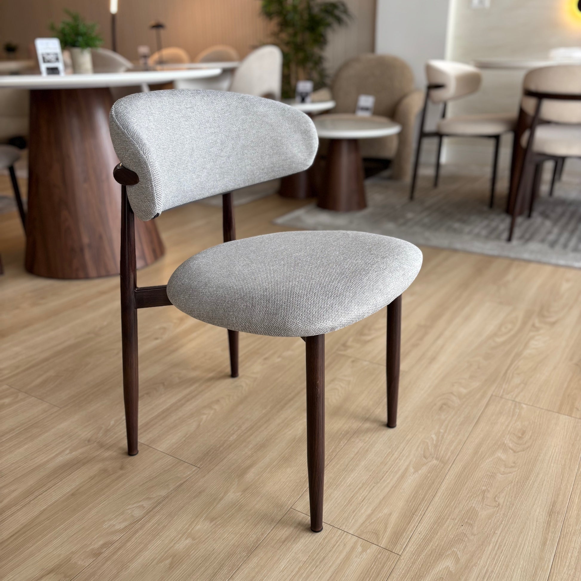 LINA - Tela Gris - Base de Metal Color Nuez Oscuro