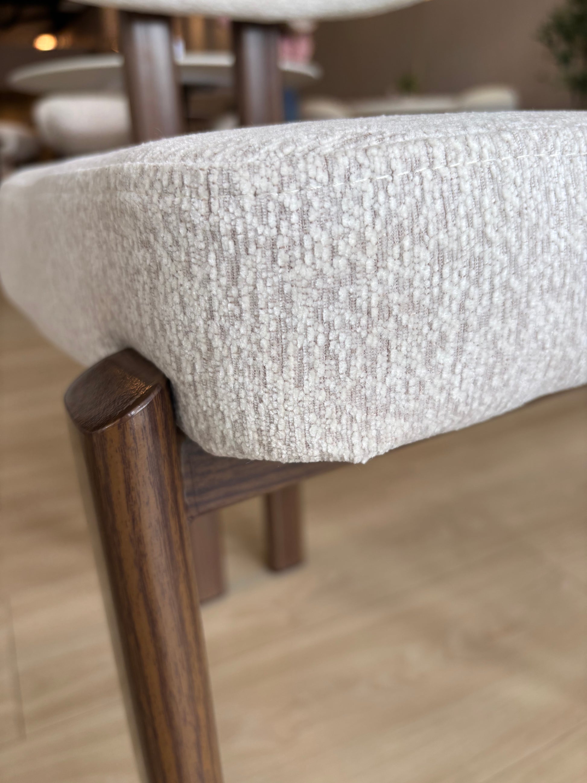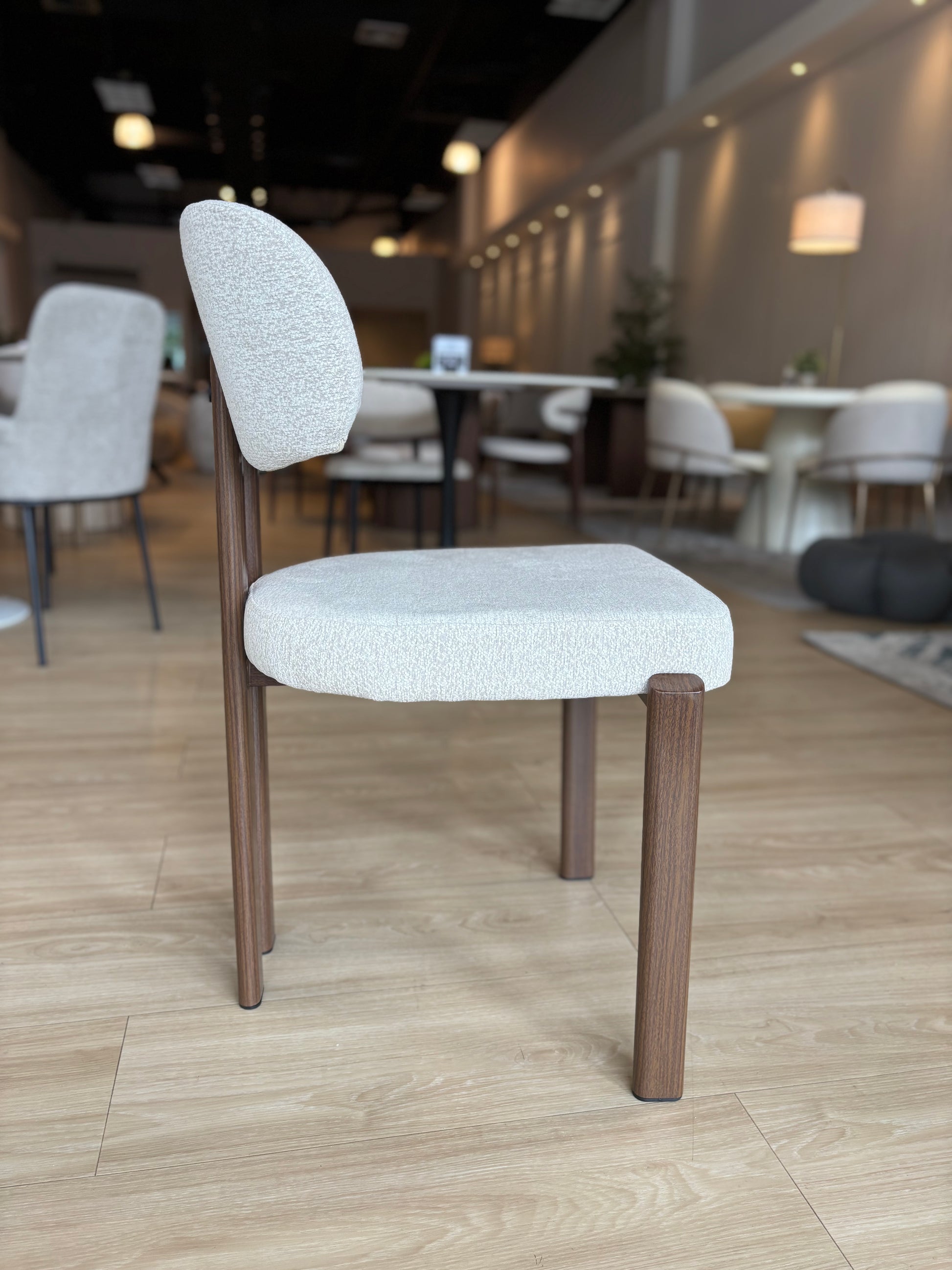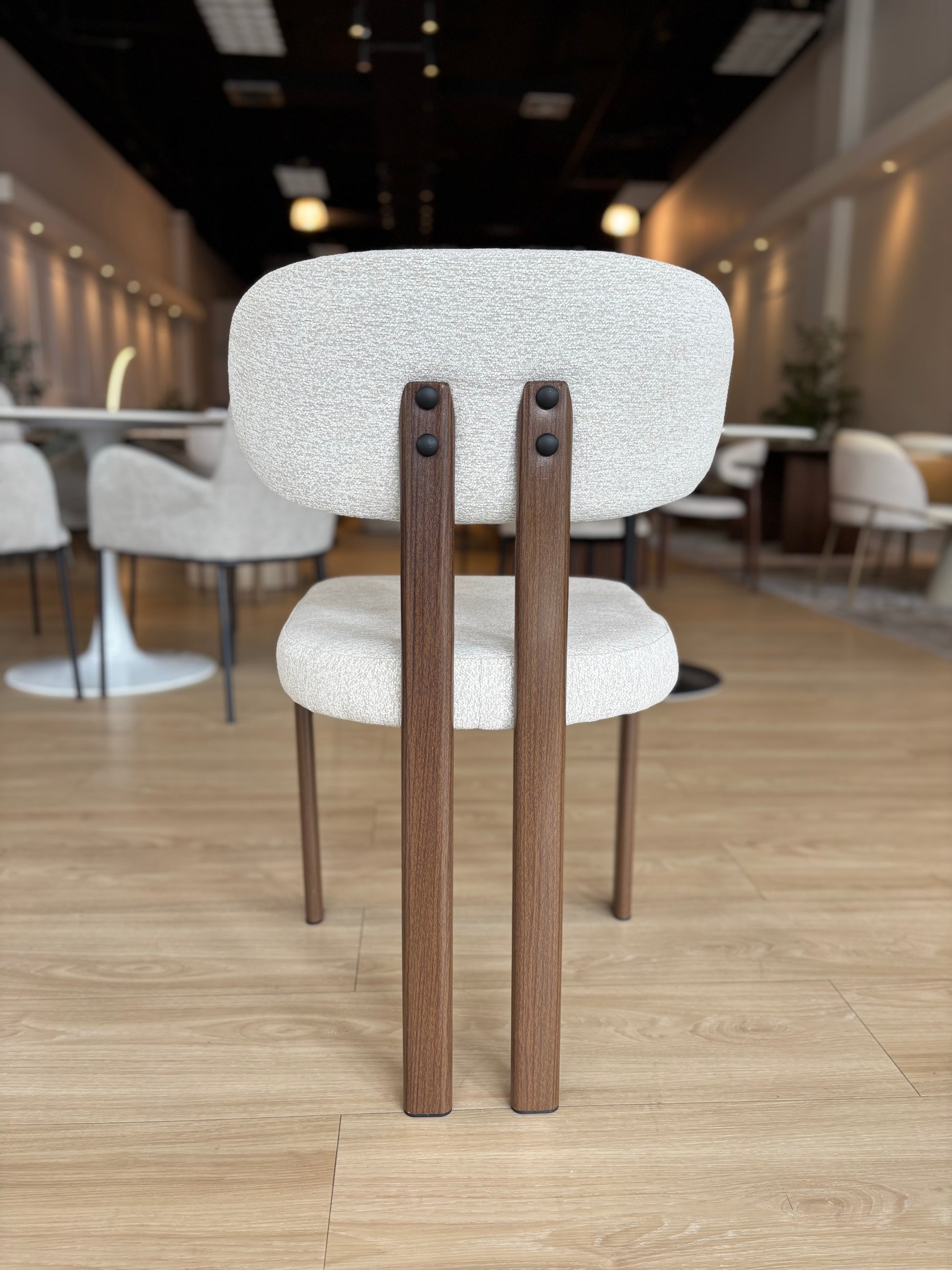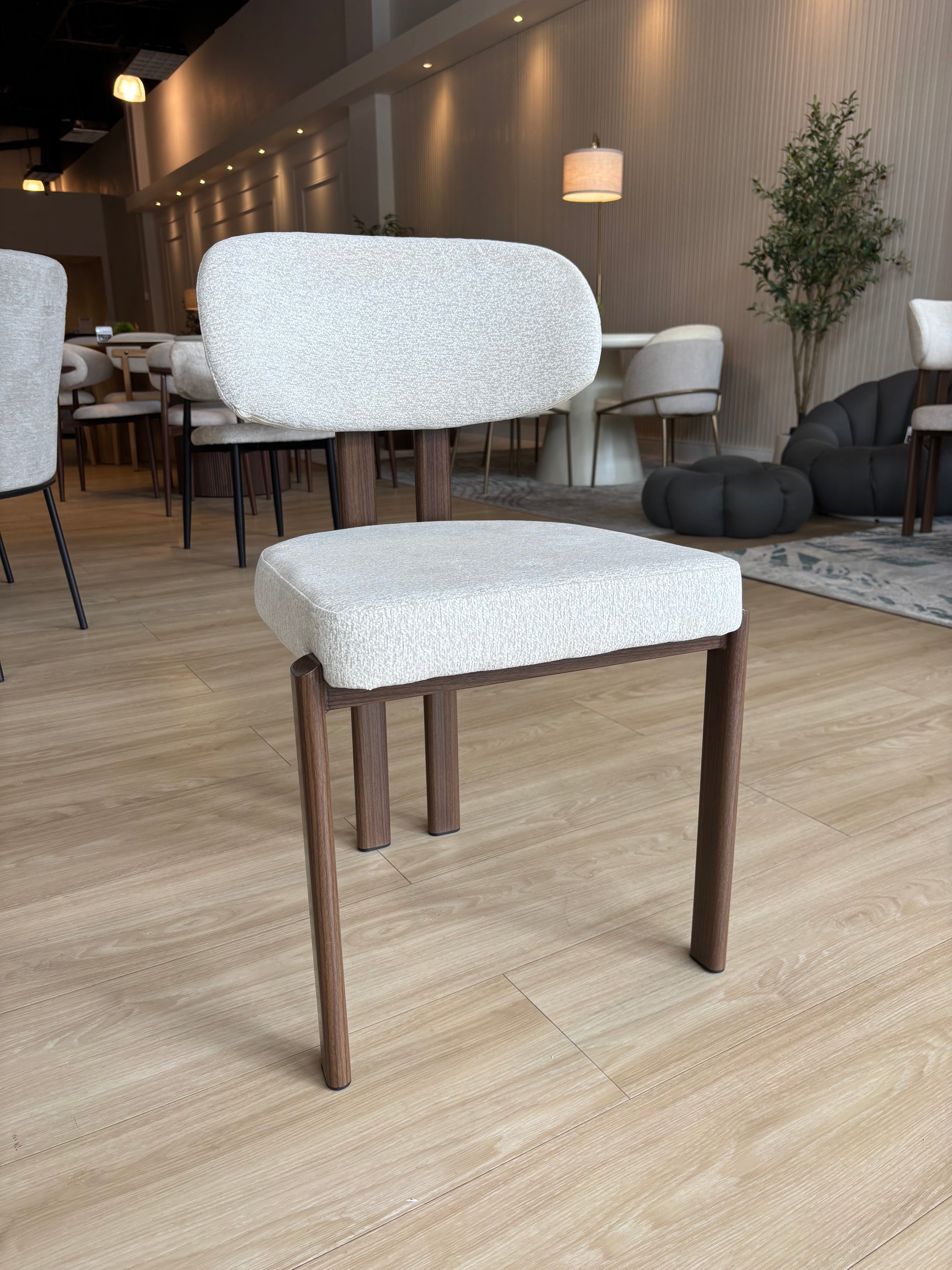MIKA - Tela Gris Claro - Base de Metal Color Nuez Oscuro